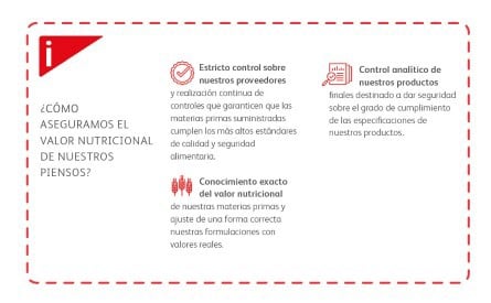 Estas permiten el seguimiento de los parámetros esenciales desde el punto de vista de la calidad nutricional y seguridad alimentaria, y la producción de piensos regulares que fomentan unas mejores prestaciones de los animales, repercutiendo, como no puede ser de otra manera, en la rentabilidad y sostenibilidad de su negocio.