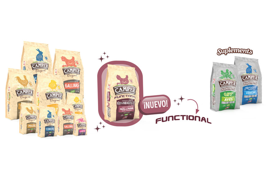 - Además, la gama incorpora un nuevo pienso para gallinas de puesta enriquecido con Omega 3: Camper Funcional.