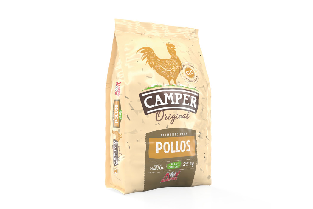 Por su parte Camperbroiler es el alimento adecuado a partir de las cuatro semanas de vida. Esta elaborado a base de cereales cocinados y formulado de acuerdo al mejor diseño nutricional para garantizar el óptimo desarrollo de los pollos y la mejor calidad organoléptica de una carne de pollo magra.