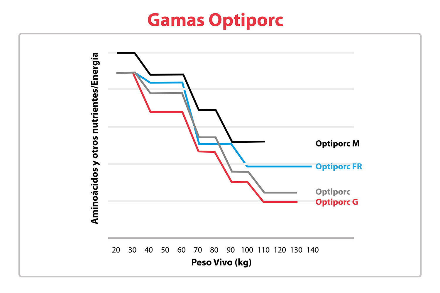 Es por esto que cada una de las gamas Optiporc tiene 4 o 5 piensos adaptados a las necesidades cambiantes de los animales en función de su peso y/o edad.