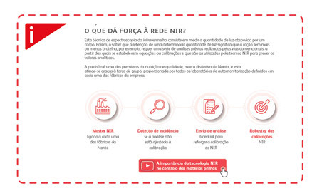 A tecnologia NIR analisa as matérias-primas através da medição da quantidade de luz absorvida pelas amostras. A Nanta foi pioneira na implementação da primeira rede de equipamentos NIR em Espanha, no ano de 1994. Desde então, avançou significativamente no desenvolvimento das calibragens de todas as matérias-primas utilizadas no fabrico de alimentos compostos para animais.