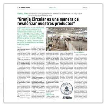 SAT Gonzar, uma exploração inaugurada no ano passado, é um modelo de eficiência e destaca-se pela sua gestão e boas práticas, o que a levou a ser uma exploração pioneira na obtenção da certificação A da Granja Circular e do certificado de conformidade da AENOR.