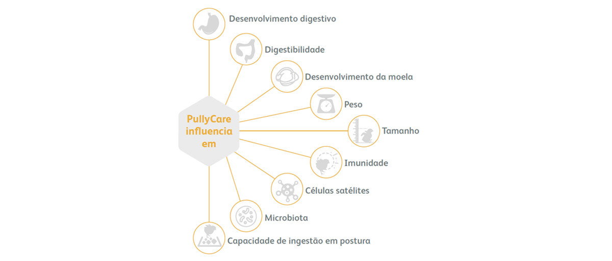 Com Erliva PullyCare®, promovemos um melhor desenvolvimento das frangas desde a primeira semana, com mais vitalidade e menor mortalidade. Isso resulta em frangas mais robustas, com maior capacidade de ingestão e início mais precoce da postura.
